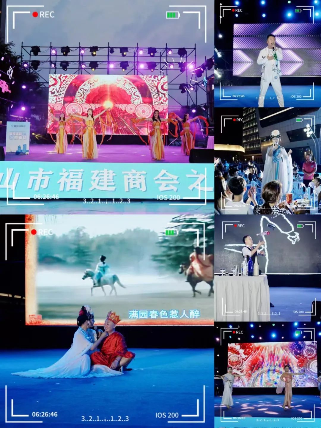 舞台之上,唱歌、舞蹈、花式调酒等精彩节目轮番上演,引来观众掌声喝彩不断,来自成都的反串歌手更是邀请观众上台扮演唐僧,在欢笑中献唱《女儿情》。舞台周围,钵钵鸡、凤爪、麻辣烫等特色美食琳琅满目、美味飘香,吸引亲友欢聚同坐,尽享美食音乐,感受浓郁烟火气。舞台之余,大家积极参与猜闽南语歌名、争夺喝啤酒速速王等一系列活动,在团结紧张又友好的氛围中,一站式享受“吃喝玩乐”。