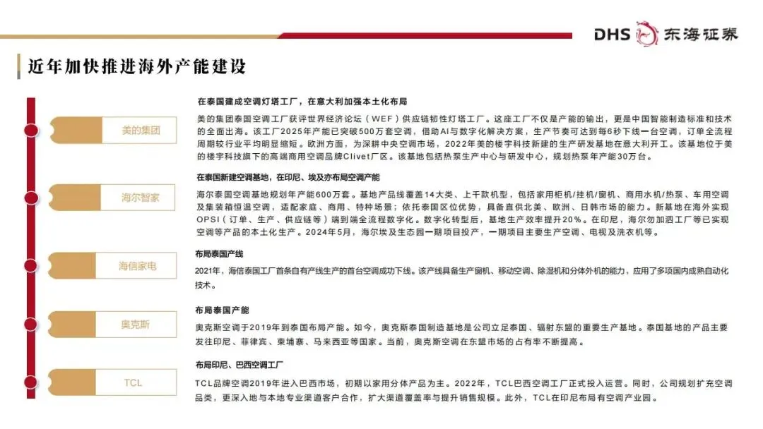 除了买公司,中国企业的另一个大动作是“工厂出海”。为了应对关税风险并贴近需求增长迅速的新兴市场,东盟已成为中国空调产能转移的核心区域。2024年,我国对东盟白电累计出口148.7亿美元,同比增长19.8%。