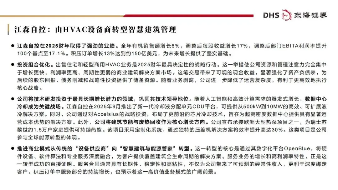我们的关注点应从传统的“空调销量”转向“PUE指标”和“海外市占率”。在海外巨头纷纷通过并购加码数据中心业务的背景下,国内拥有自主液冷技术和核心压缩机技术的企业,将具备极高的配置价值。