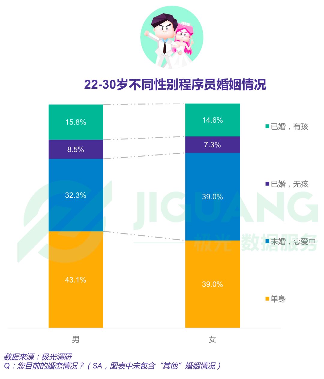 42%的22-30岁受访程序员目前仍处于单身状态,世界这么大,适合他们的另一半大概是迷路了