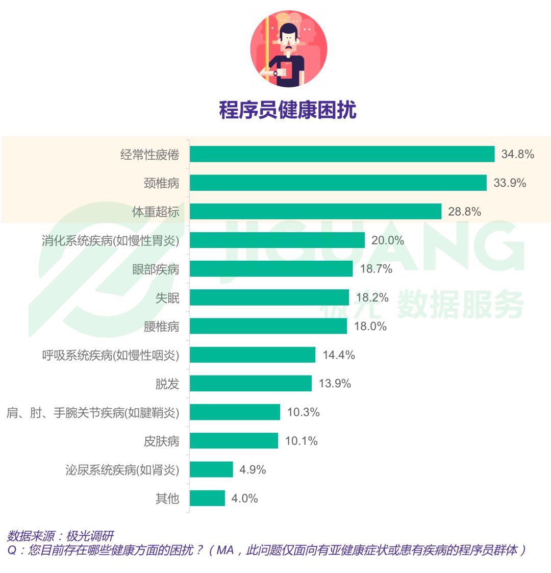 经常性疲倦、颈椎病、体重超标是困扰程序员群体的重要健康问题