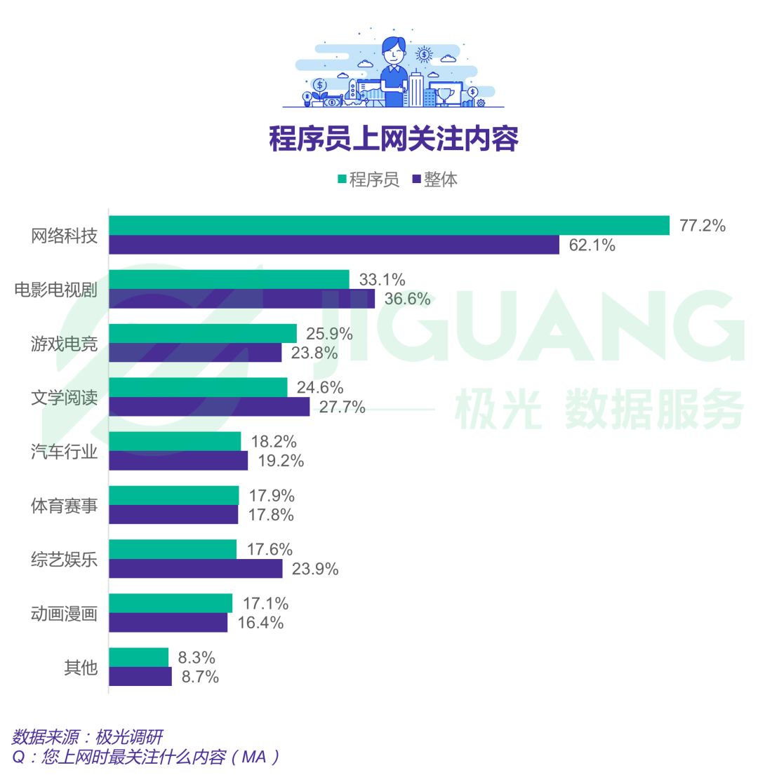 紧跟科技潮流,走在技术前端,77.2%的程序员上网关注网络科技内容