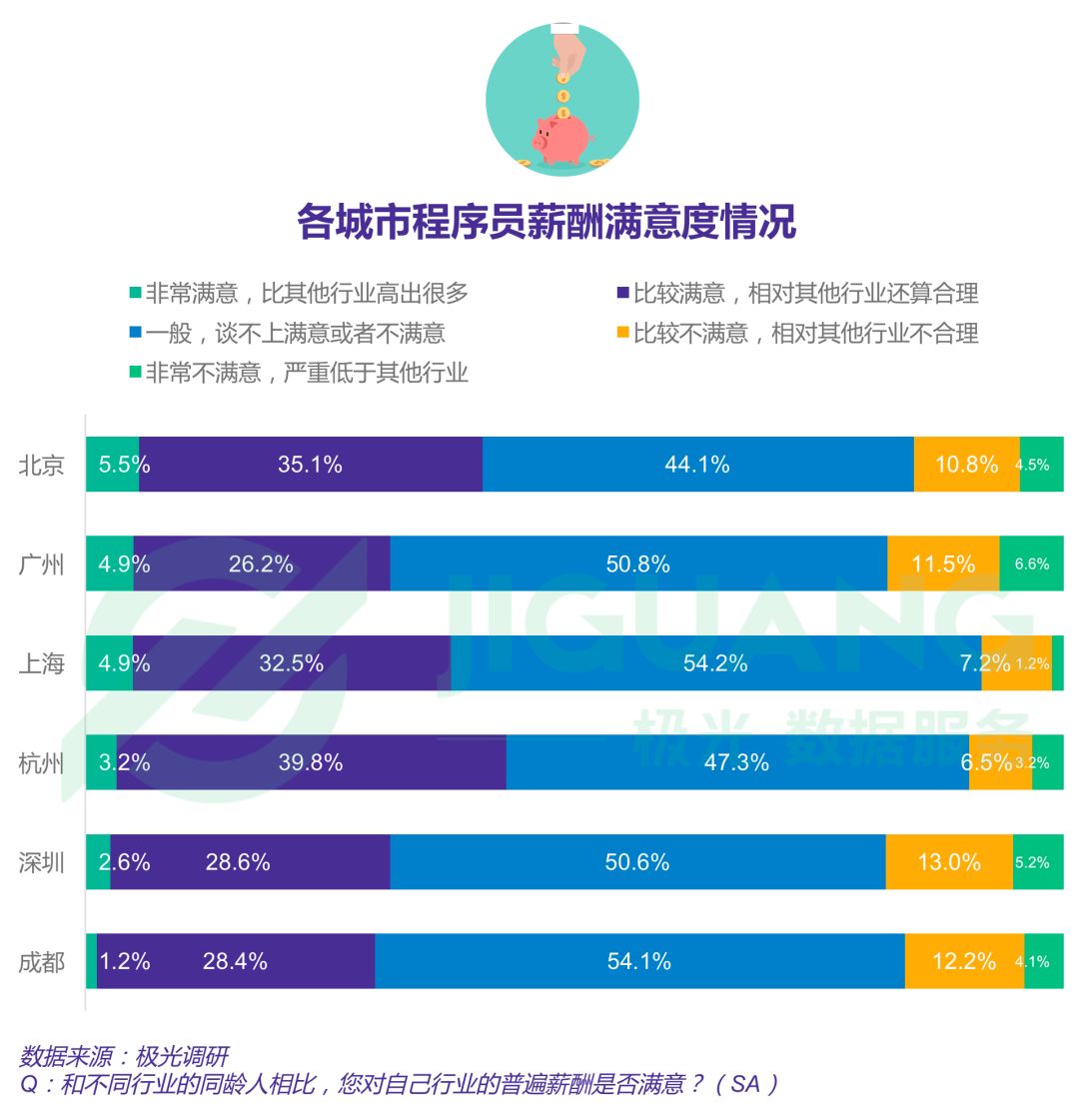 同为非一线城市,杭州程序员薪酬满意度较高,成都则较低