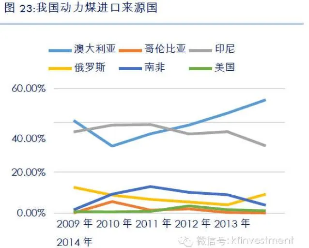 我国动力煤进口主要来自印尼和澳大利亚。两国的动力煤在总进口中所占的比重近80%。此外,俄罗斯、南非等地也是我国进口动力煤的主要来源国。从趋势上看,我国动力煤进口越来越倚重澳大利亚,印尼在自身消费需求上升及我国进口煤质量的要求下,其在我国动力煤进口中的地位有所下降。进入2015年由于我国国内煤炭价格的持续低位,煤炭进口受压情况越来越严重,至3月,我国动力煤进口1736万吨,同比下跌46%。