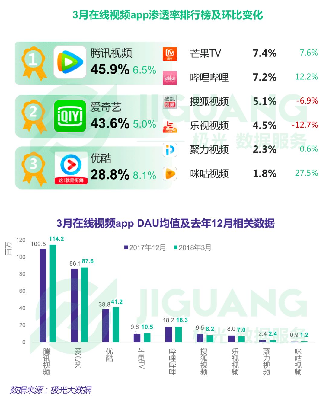 在线视频领域,腾讯视频3月渗透率达45.9%,环比增长6.5%,3月DAU均值达1.14亿;爱奇艺3月渗透率达43.6%,环比增长5.0%,3月DAU均值达8760万