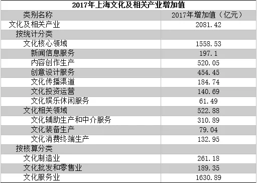 上海文化产业2017年基本数据:由于2018年文化产业增加值数据由国家统计局统一于2019年下半年对外公布,为保证分析的客观、公正、可靠,本报告仅援引2017年及之前年份文化产业的相关统计数据。