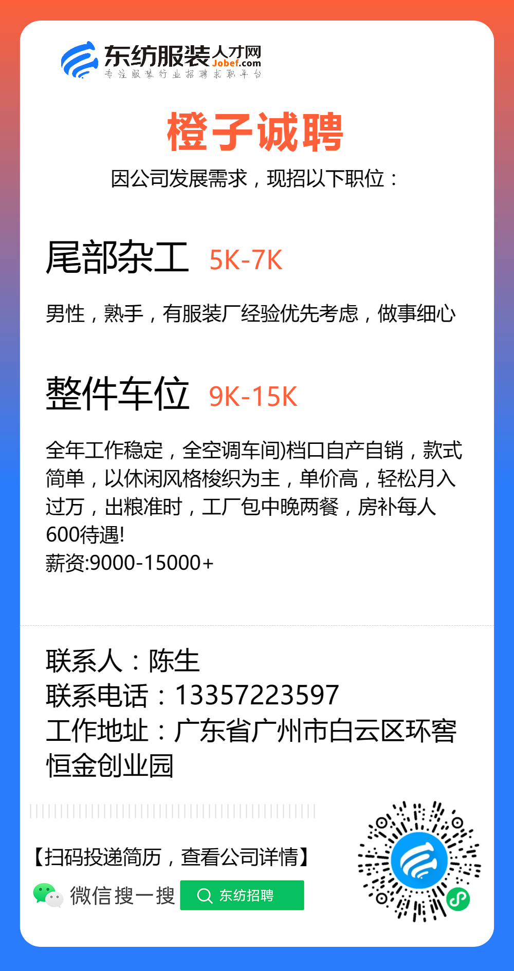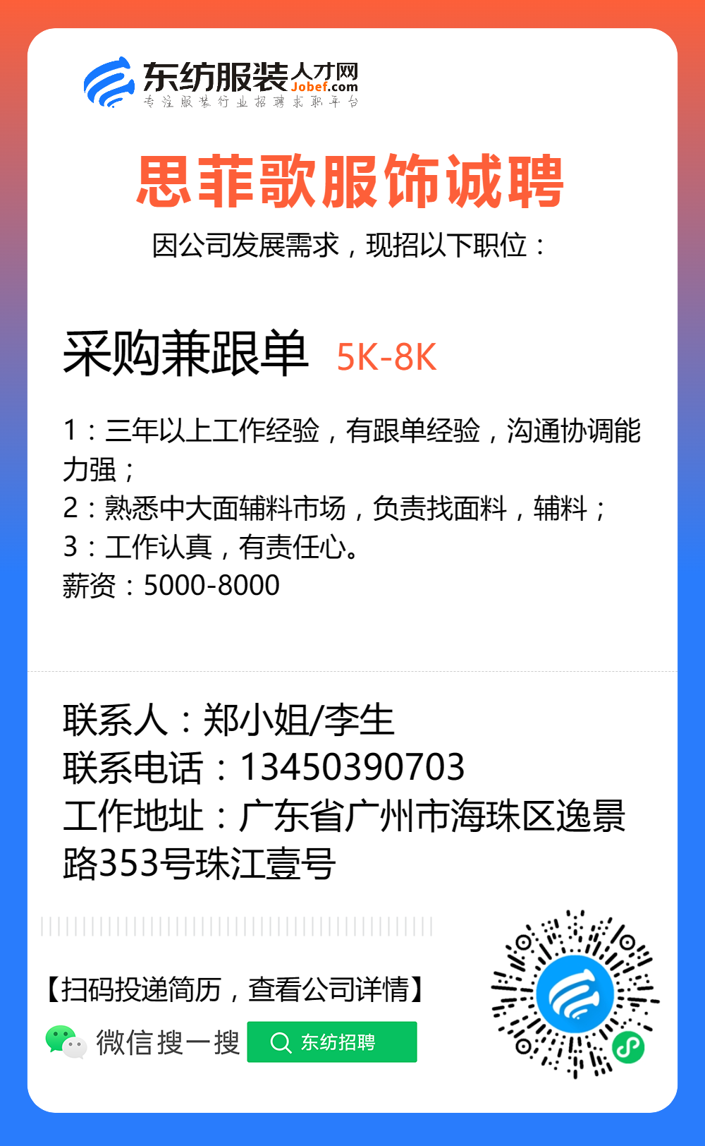 服装招聘·工厂类丨8. 17 号,跟单、采购、车位、裁床、尾部……