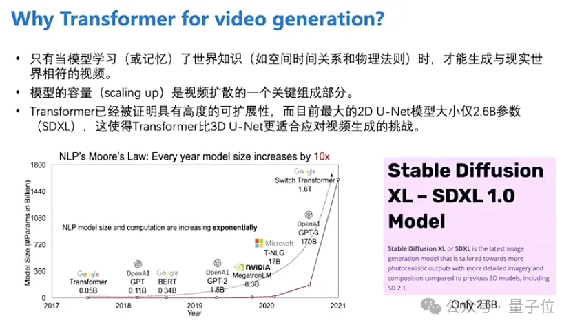 卢志武表示,Transformer模型具有捕捉长期或不规则时间依赖性的优势,这在视频领域尤为重要;而Transformer模型的参数量可以根据需要增加,这为提高模型性能提供了灵活性。