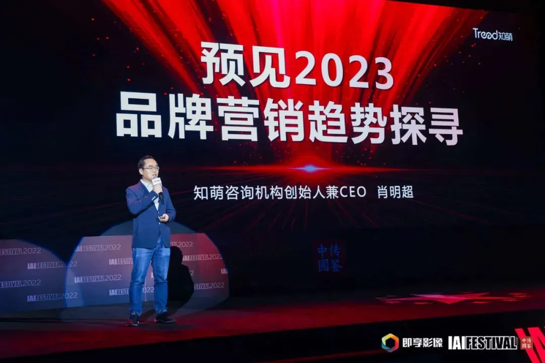 9月7日,以“鉴势而长”为主题的2022 IAI FESTIVAL传鉴国际创意节在北京东亿天弘演播大厅盛大开幕。知萌咨询机构创始人兼CEO肖明超出席活动,并结合知萌咨询机构对于IAI传鉴国际广告奖带来《预见2023,品牌营销趋势探寻》主题演讲,以下为演讲实录。