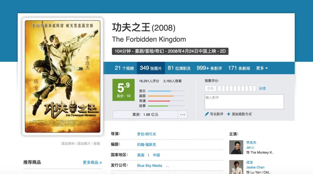 (即使拥有成龙和李连杰加持,依旧不能改变好莱坞版“西游记”《功夫之王》大烂片的地位,虽然它确实是一部赚钱的大烂片)