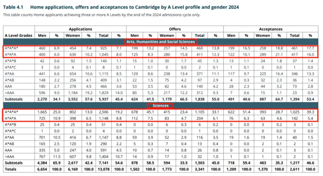 在这些被录取的学生中,绝大多数人(94.7%)在其最优的三门A-Level科目(不含通识研究和批判性思维)中取得了A*AA或更优异的成绩。