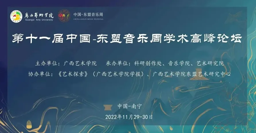 11月27日至12月1日,由国际现代音乐协会(ISCM)指导,广西艺术学院主办的第十一届中国-东盟音乐周(China-ASEAN Music Festival)在广西南宁举行。本次音乐周期间共举办了八场音乐会、四场论坛以及四场讲座,其中音乐会包含交响乐作品音乐会、民族管弦乐作品音乐会、交响合唱《丝路远航》、中国—东盟当代乐团·第二届驻团作曲家专场音乐会、武汉音乐学院“武汉钢琴三重奏”专场音乐会、印度尼西亚万隆艺术学院&广西艺术学院印尼甘美兰音乐专场音乐会、《听筝品韵》上海音乐学院“和风韶华”筝乐团专场音乐会、广西少数民族音乐专场音乐会,集中展示了我国和东盟国家音乐创作与艺术研究的新成果,反映了广西艺术学院音乐创作、民族音乐研究与音乐表演专业的发展,为听众奉献一届当代音乐和富有民族地域地域特色的音乐盛宴,体现了音乐周“探索艺术、立足民族、包容共进、超越未来”的精神。