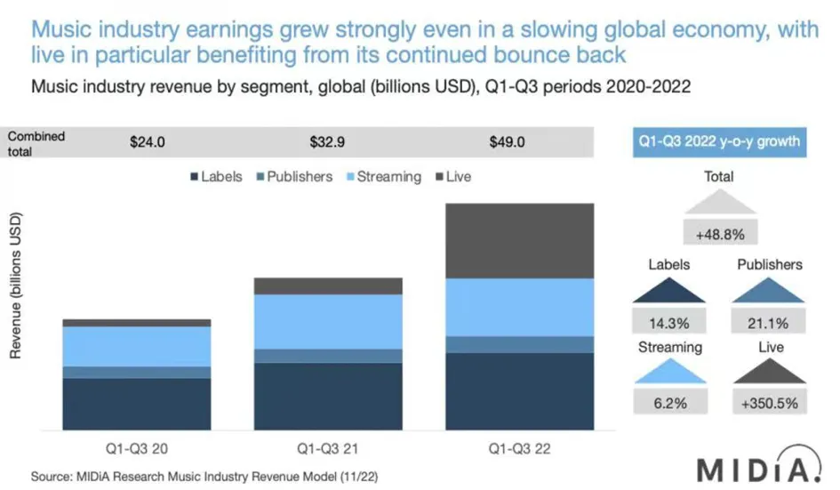 MIDiA发布《2022第三季度音乐行业收益》报告