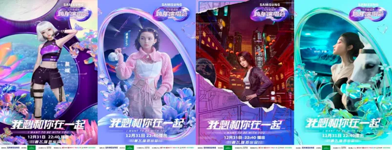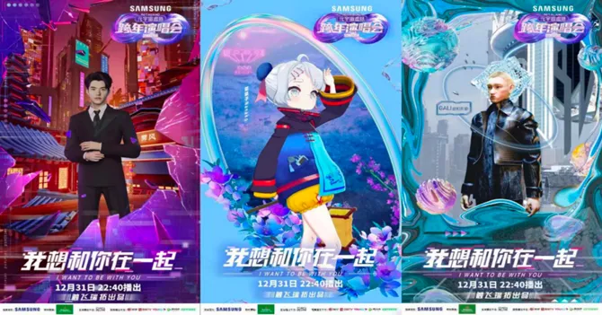 数字音乐与虚拟偶像的“碰撞”更是在2022年年底达到高潮。11月6日,虚拟偶像组合A-SOUL在VR一体机PICO里举办了组合的第一场VR演唱会,为粉丝带来了一次生动的立体交互体验;在12月16日举办的“动感地带·世界杯音乐盛典”上,周杰伦与动感地带官方数智代言人橙络络实现了跨次元的“破壁对唱”,带领观众感受了一场元宇宙音乐的趣味与魅力。随后,各大平台在年末的跨年演唱会上各自发力,上演了一场虚拟偶像演出大比拼。在央视“启航2023”跨年晚会的舞台上,青年古筝演奏家李杨冠宇和虚拟演奏者辰安共同奏响一曲《山海万里》,跨界融合的国风演奏令人震撼;湖南卫视推出了姚安娜与数字人乐队的合作舞台《ART》,并且将整个舞台数字化,令人眼前一亮;东方卫视则是由首次亮相的超写实数字人东方嫒与程潇合作了歌舞节目《我曾遇到一束光》;江苏卫视以王源为原型创作数字人,打造了一支单人虚拟乐队,五个“王源”同台表演也引发网友热议。