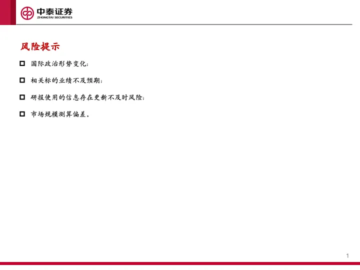 本订阅号所载的资料、工具、意见、信息及推测仅提供给客户作参考之用,不构成任何投资、法律、会计或税务的最终操作建议,中泰证券及相关研究团队不就本订阅号推送的内容对最终操作建议做出任何担保。任何订阅人不应凭借本订阅号推送信息进行具体操作,订阅人应自主作出投资决策并自行承担所有投资风险。在任何情况下,中泰证券及相关研究团队不对任何人因使用本订阅号推送信息所引起的任何损失承担任何责任。市场有风险,投资需谨慎。