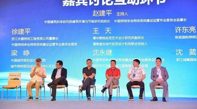 在中国建筑科学研究院建筑环境与节能研究院院长、中国照明学会照明系统建设运营专业委员会监事长赵建平的主持下,徐建平、王天、许东亮、梁峥再次上台,和深圳市千百辉照明工程有限公司总经理沈永健、浙江城建园林设计院有限公司院长沈葳一起深入讨论了照明建设维护经验和杭州G20、青岛照明规划设计心得等。互动嘉宾们的妙语连珠、真知灼见令在场的所有人受益匪浅,掌声如潮。