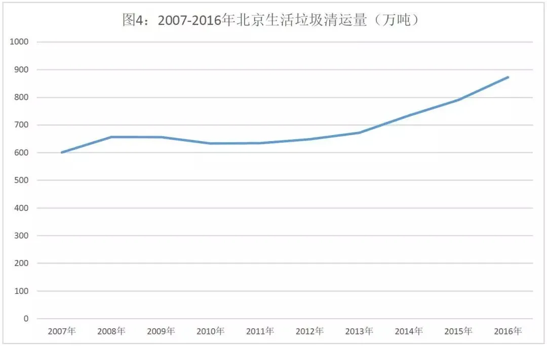 以北京为例,2007-2016年十年间,生活垃圾清运量增长了45%,同期人口数量增长29.7%,远低于垃圾清运量的增长。可见,北京市居民最能“挣钱”,同时产生垃圾的能力在不断的“增强”。