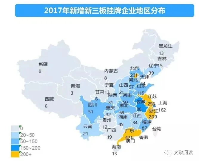 从新三板挂牌图,我们不难发现,四川、湖北、河南均在一个方阵50-100家之间,湖北69家、四川51家、河南50家,陕西在30-50之间,只有31家,差了一个台阶。