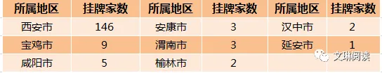在陕西省的挂牌企业中,有146家分布在西安,占比达85%,呈高度集中状态。