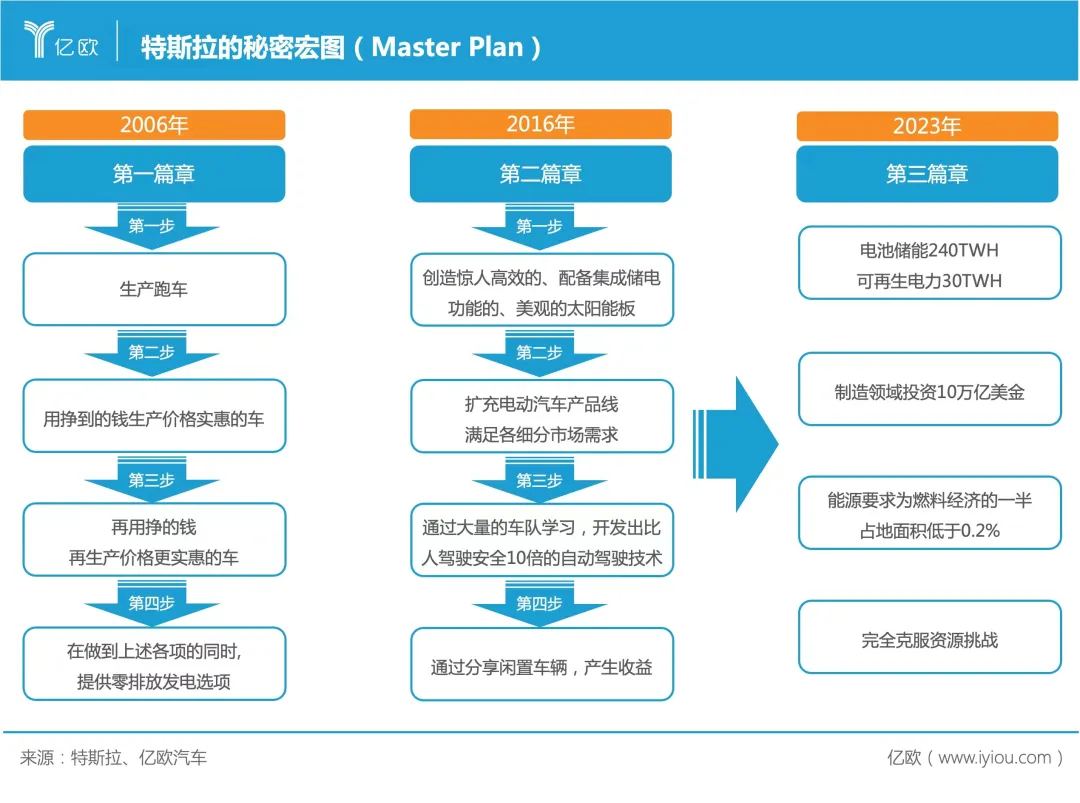 特斯拉曾在2006年开启第一篇章:第一步生产跑车;第二步用挣到的钱生产价格实惠的车;第三步再用挣到的钱,生产价格更实惠的车;第四步在做到上述各项的同时,提供零排放发电选项。