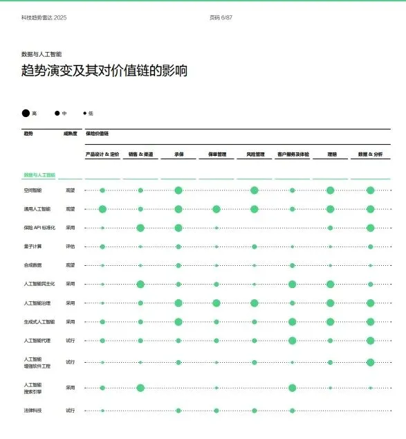 数据与人工智能是推动保险行业变革的核心力量,报告中多个趋势已进入实践阶段: