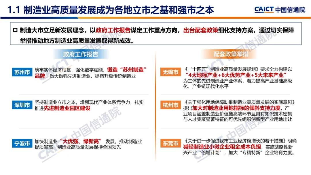 (一)制造业高质量发展成为各地立市之基和强市之本