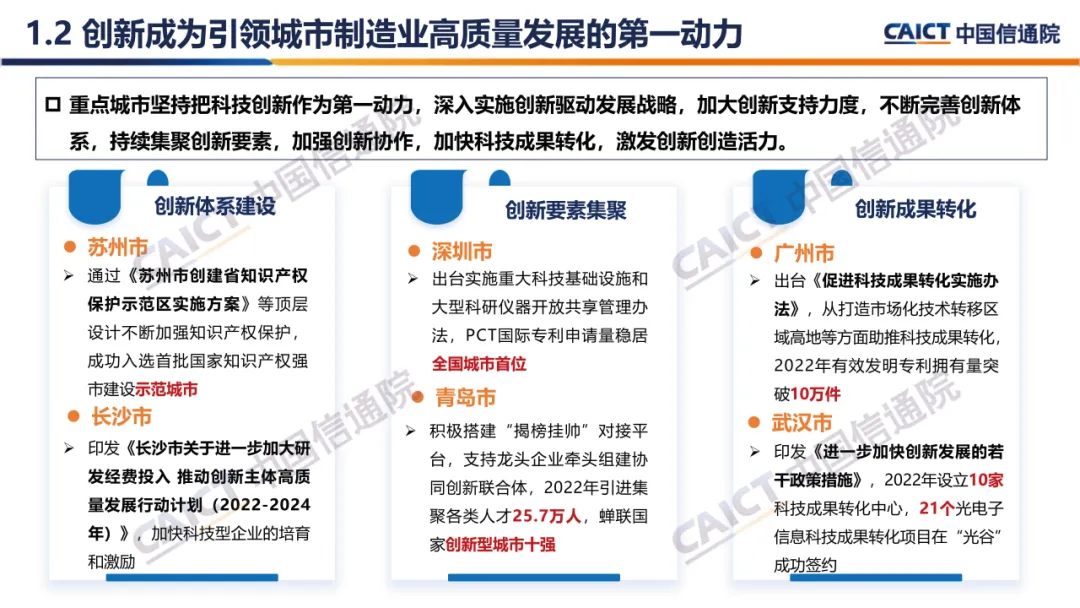 一、发展现状:重点城市深耕制造业,高质量发展取得新成效