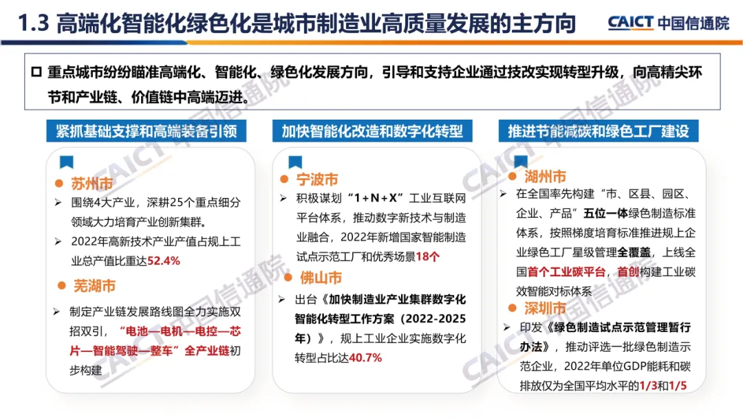 (三)高端化智能化绿色化是城市制造业高质量发展的主方向