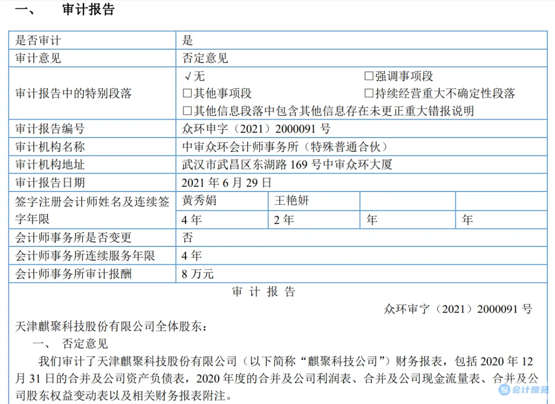 ②2020年12月至审计报告日,麒聚科技公司除1名管理人员,无其他在职员工;