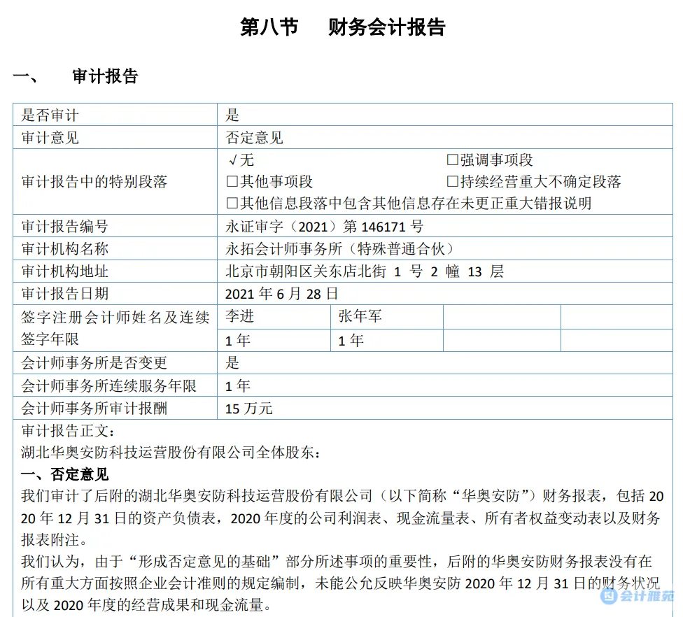 上述情况表明华奥安防已不具备持续经营能力,因此我们认为华奥安防按照持续经营假设编制的 2020 年度财务报表不恰当。