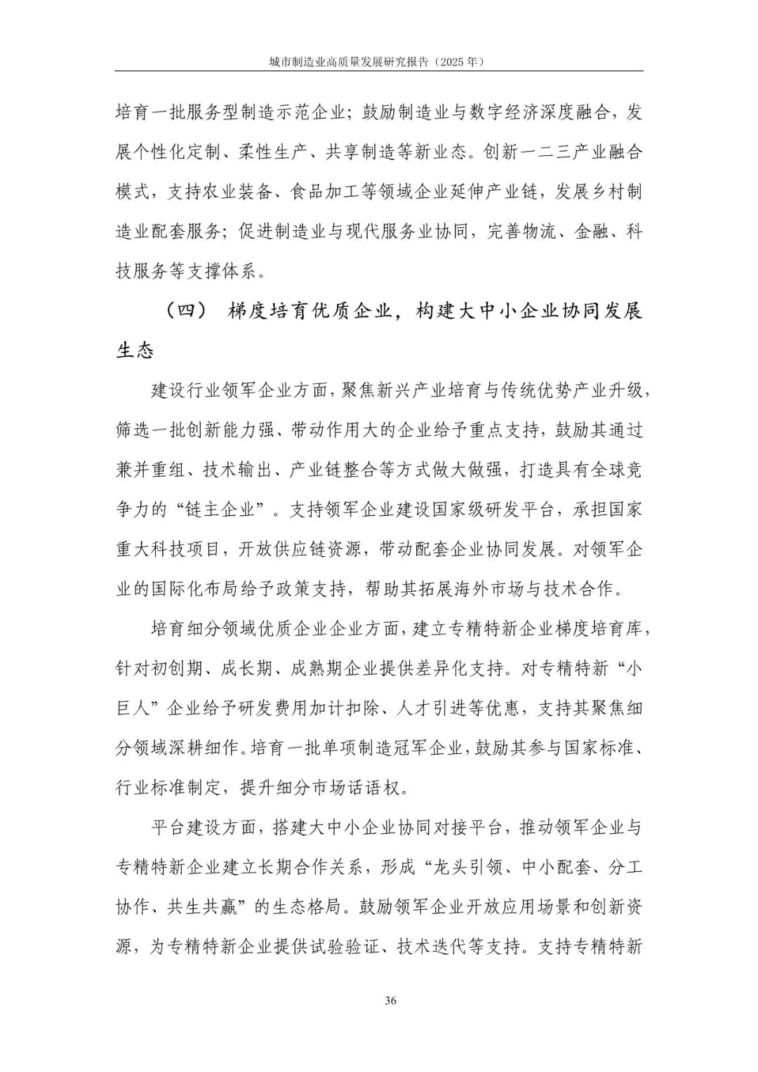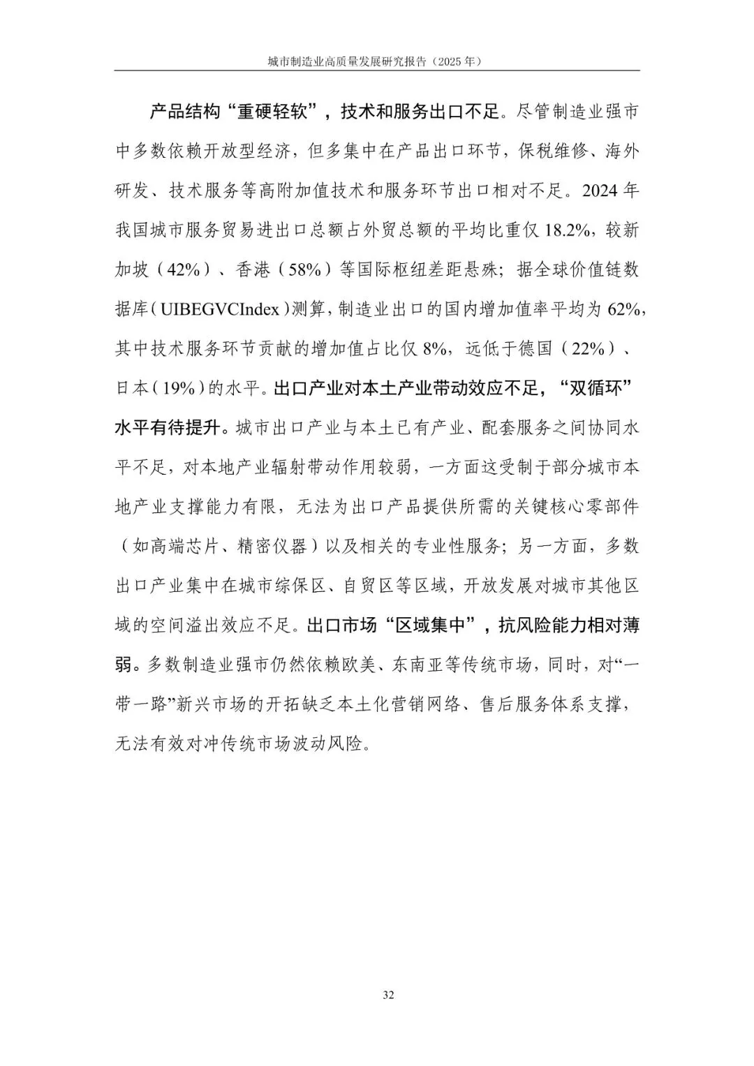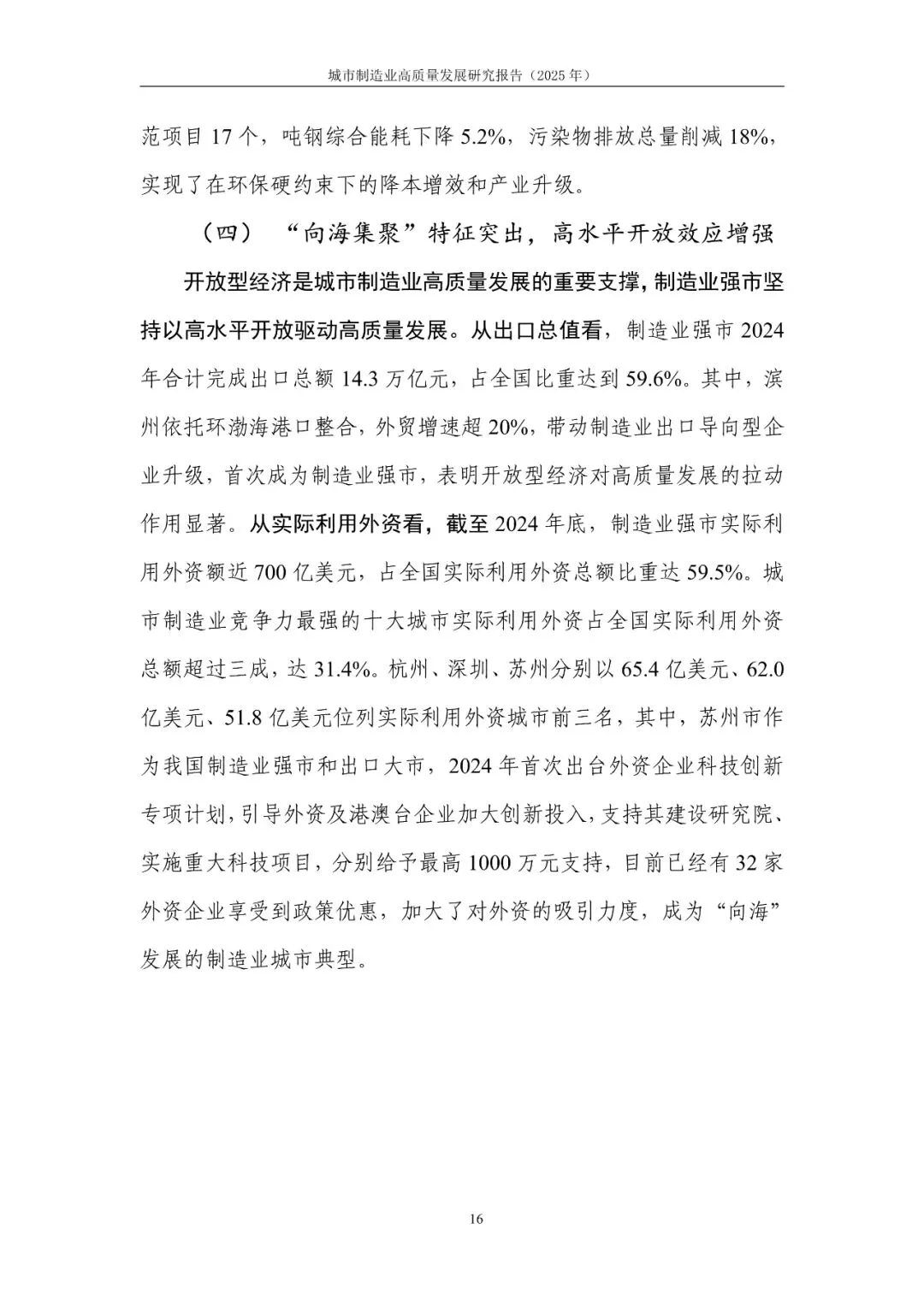 然而,城市制造业高质量发展仍面临诸多挑战,包括区域差距扩大、科技成果转化效率待提高、基础研究和原始创新占比相对不足、新旧产业衔接失序、企业培育生态有待完善、对外开放结构性矛盾显现等。报告提出,未来应优化制造业区域空间布局,构建“产学研金用”一体化创新生态,大力提升智能化、绿色化、融合化水平,梯度培育优质企业,加快对接国际标准与规则,加速推动制度型开放,以实现城市制造业的高质量发展。