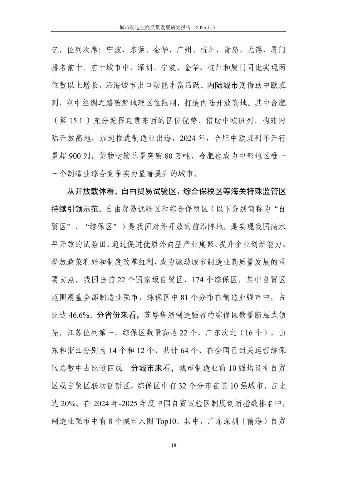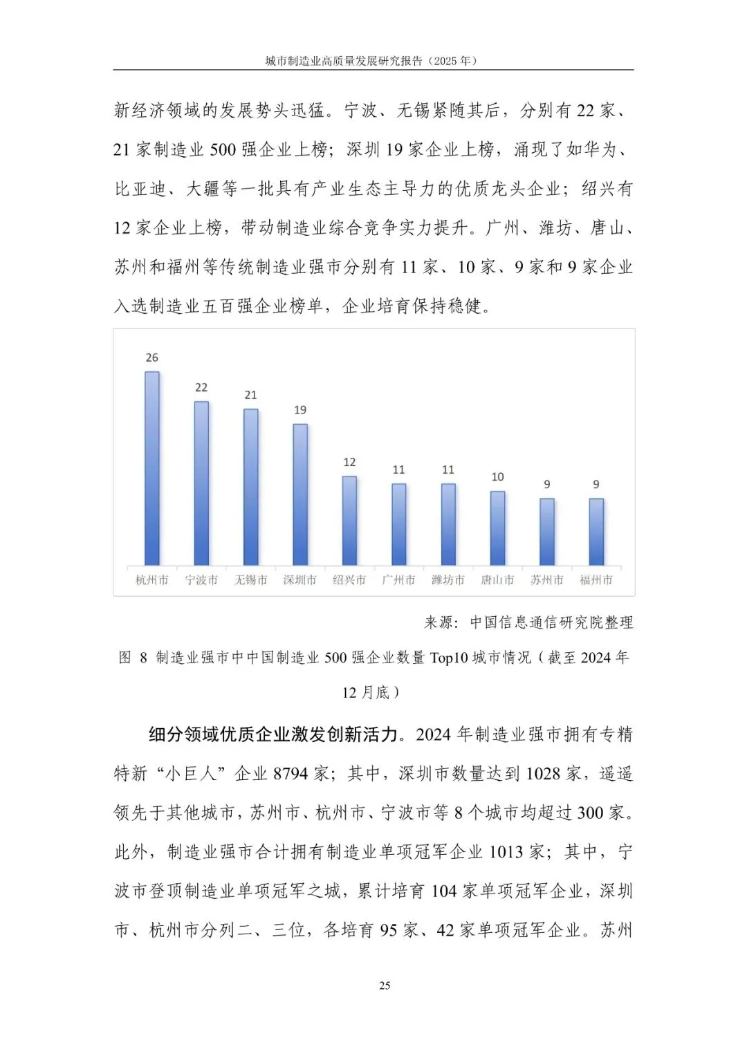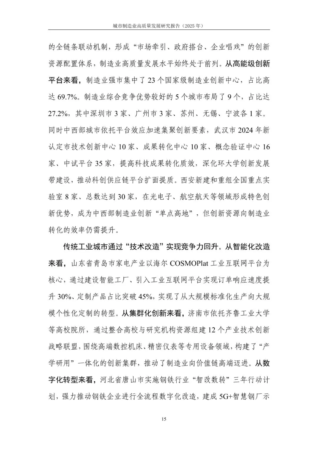 然而,城市制造业高质量发展仍面临诸多挑战,包括区域差距扩大、科技成果转化效率待提高、基础研究和原始创新占比相对不足、新旧产业衔接失序、企业培育生态有待完善、对外开放结构性矛盾显现等。报告提出,未来应优化制造业区域空间布局,构建“产学研金用”一体化创新生态,大力提升智能化、绿色化、融合化水平,梯度培育优质企业,加快对接国际标准与规则,加速推动制度型开放,以实现城市制造业的高质量发展。