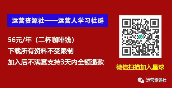 需要下载运营资料的朋友,可以扫下方二维码付费成为会员,56000+份完整版运营资料,随意下载,不受限制,资料涵盖各类运营赛道。星球针对各类运营赛道做了合集系列,合集系列保持更新。客服微信:xqzy688