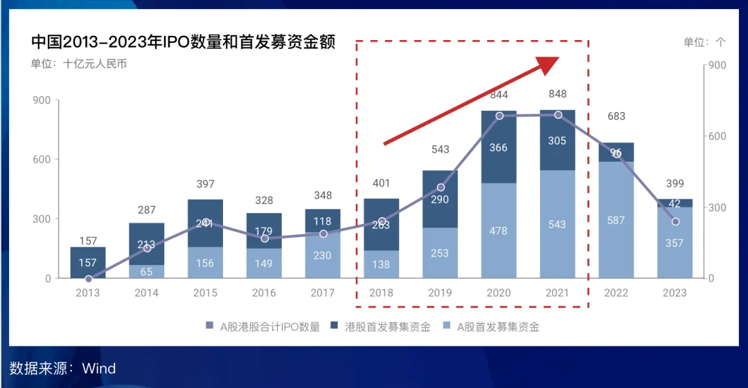 在2018-2021年,我国的资本市场经历了港股18A改革和科创板的开板的政策红利期,未盈利生物科技公司以及具有科创属性的企业上市门槛显著降低,彼时IPO的繁荣一定程度上掩盖了日渐累积的退出问题。
