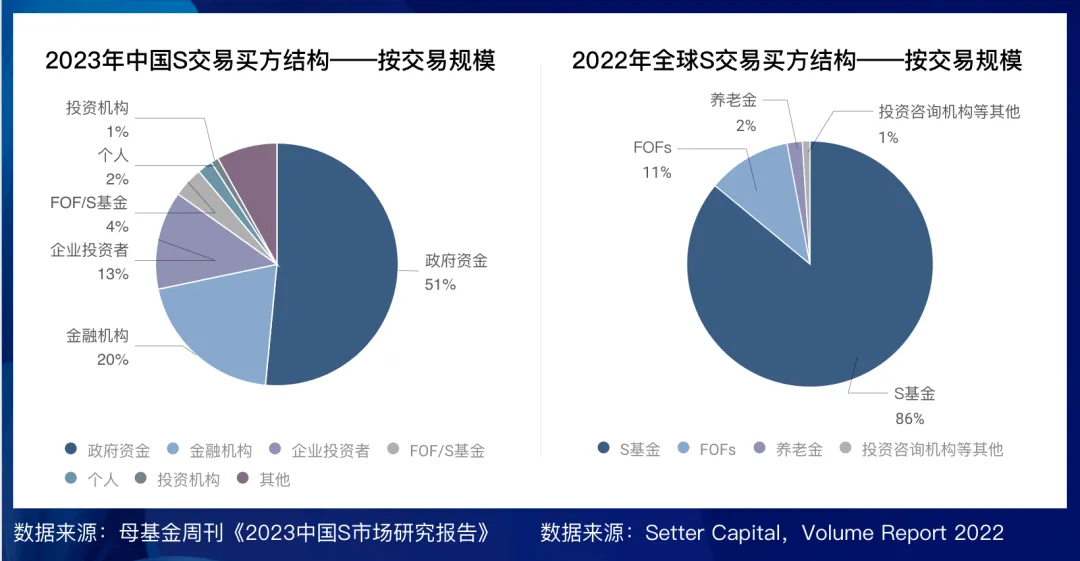 4、今天中国S市场中的机构化买方并没有那么多,但很可能比想象的要多。当前专业化S基金在市场中占比不足5%,更多的买方集中在非显性的地方政府、金融机构、产业投资人等方向。长期而言,我们认为S市场的买方参与者将以专业化的S基金为主,而他们很可能是从上述非显性群体中脱颖而出的独立团队或独立主体。此外,未来S市场上也将进一步分化出领投和跟投的角色,头部的专业化S基金将形成品牌效应,成为挑选资产、主导尽调、设计架构和估值定价的领头羊。