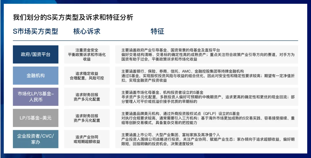 1) 除了S基金外,去寻找其中相对有迹可循、且出资额较大的买方群体,如金融机构。