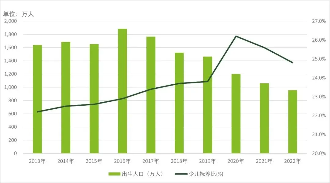 随着国内生育率持续走低,此前居民家庭中围绕婴童进行的母婴类消费支出逐渐转向宠物消费。近十年抚养比数据显示,少儿抚养比自2020年以来已连续两年下降。少儿抚养比的下降也反映出处于生育适龄人群的年轻人生育意愿正在下降。取而代之的是由猫狗等动物支撑起来的陪伴需求的快速增加。据Euromonitor测算,截止2022年底国内宠物数量已达到2.2亿只。由此催生的是围绕宠物食品、营养、日常用品、护理,医疗相关的各项商品和服务的需求快速增长。据唯品会公布的数据,今年“双十一”期间猫窝/狗窝销量同比增长近10倍,宠物服饰/配饰销量同比增长118%,宠物零食整体销量同比增长64%。