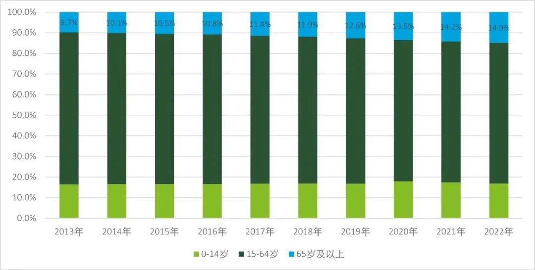 图:2012-2022年各年龄段占比变化情况