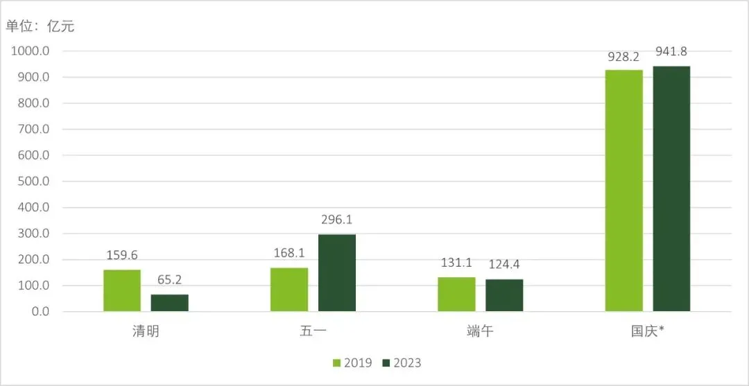 *2023年国庆数据包括中秋;日均旅游消费收入=当期假期数/当期旅游收入
