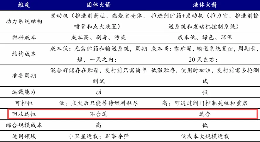 固体火箭和液体火箭的差异在于液体火箭有燃料箱、泵、燃烧室等