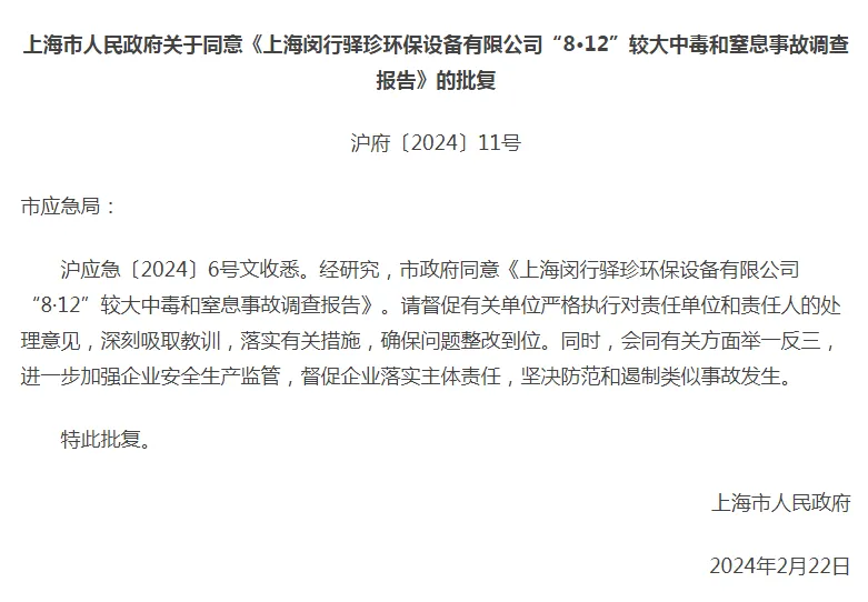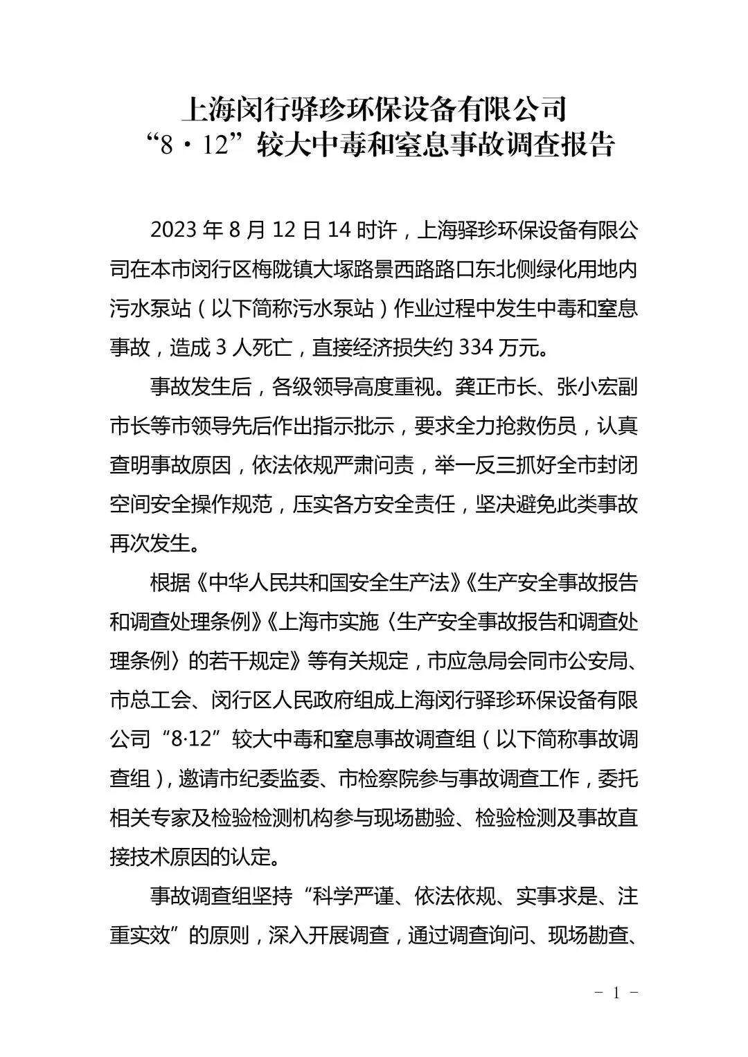 上海闵行驿珍环保设备有限公司“8·12”较大中毒和窒息事故