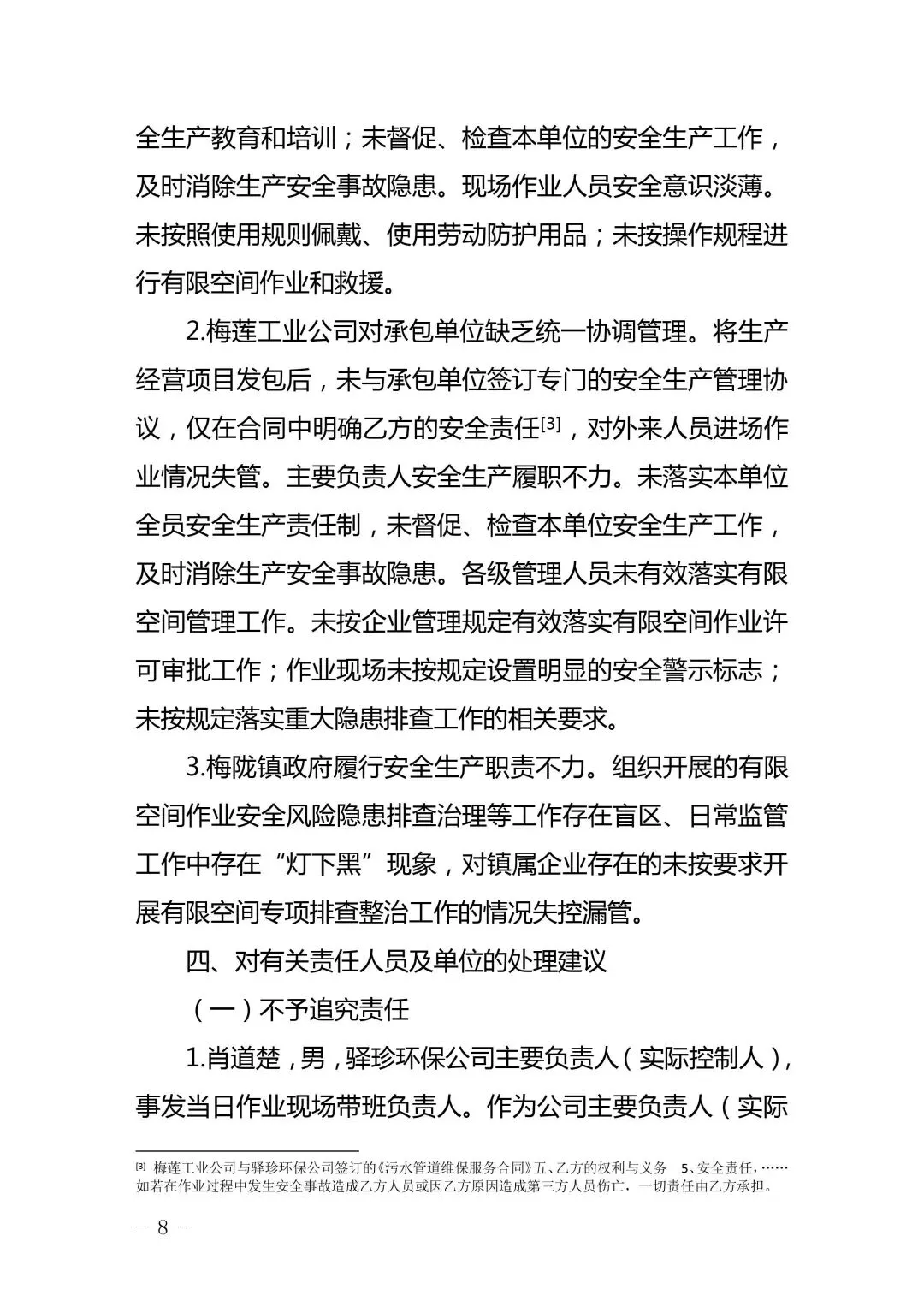 3.梅陇镇政府履行安全生产职责不力。组织开展的有限空间作业安全风险隐患排查治理等工作存在盲区、日常监管工作中存在“灯下黑”现象,对镇属企业存在的未按要求开展有限空间专项排查整治工作的情况失控漏管。