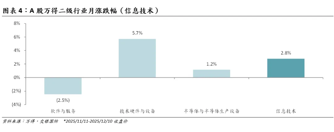 本文节选自交银国际已发布研究报告《科技行业月报-科技股走势分化,A股表现亮眼,继续看好AI建设前景》(2025/12/12)。