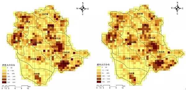 基于人口活动特征对城市空间进行分类反应空间的实际使用状况。总体看,除就业用地具有相对明显较大规模的集聚之外,其他各类用地均在空间混杂分布。