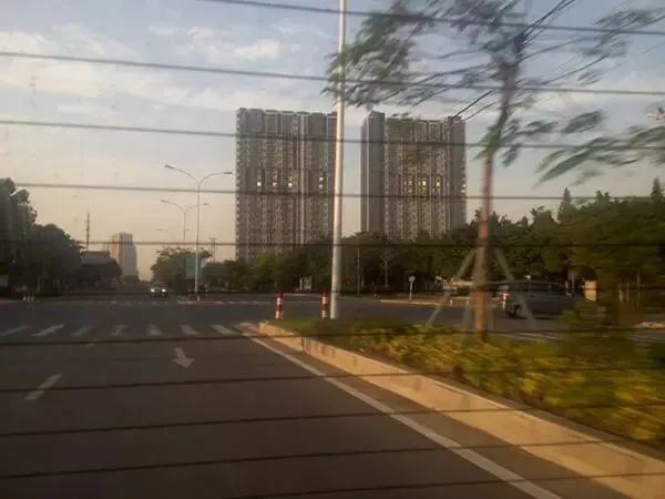 车窗外的两栋高层住宅,是美的集团员工宿舍