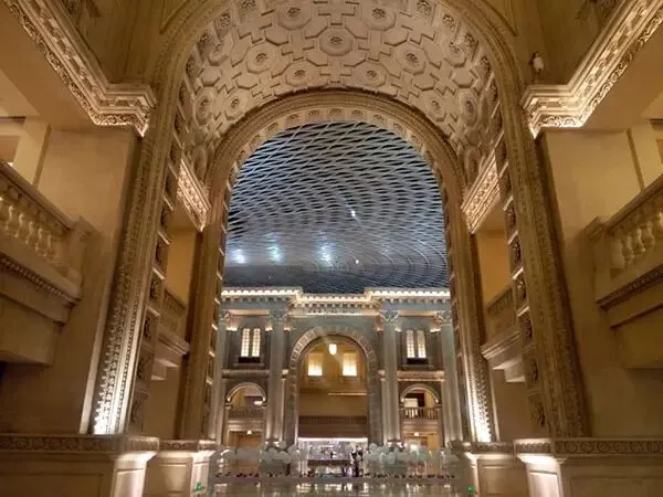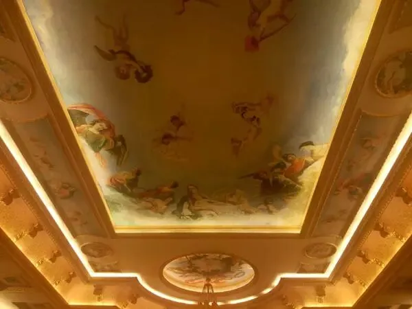 罗浮宫内部大厅天花板的壁画,由广州的绘画大师手工一笔笔画上去的