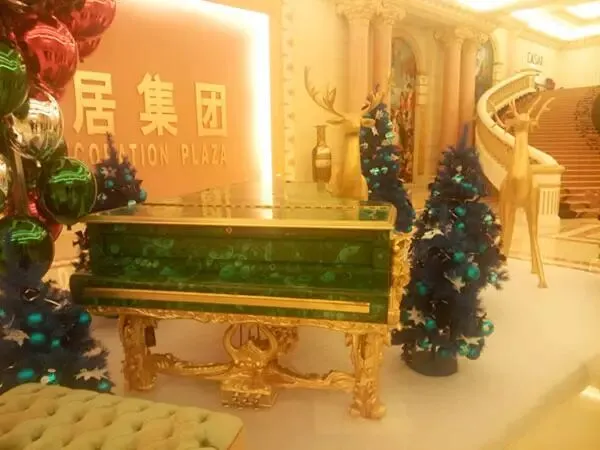 陈列在大厅中的钢琴,外表由绿宝石做成,被郎朗弹过