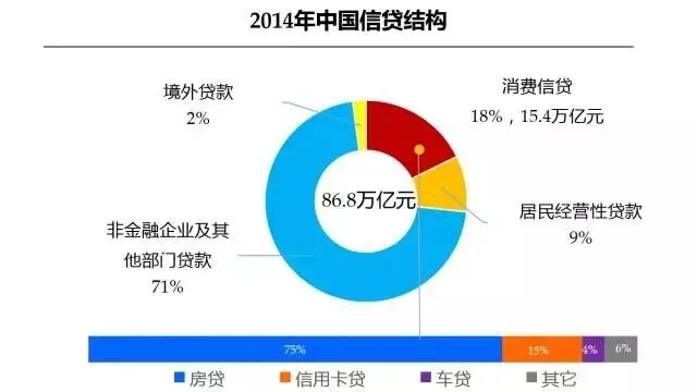 2014年,中国消费信贷占整体信贷市场规模的比例只有18%,美国为48%。