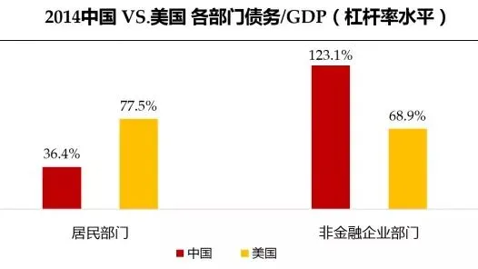中国居民部门杠杆率水平较低,非金融企业部门杠杆率水平较高,面临居民部门升杠杆、非金融企业部门降杠杆的趋势。