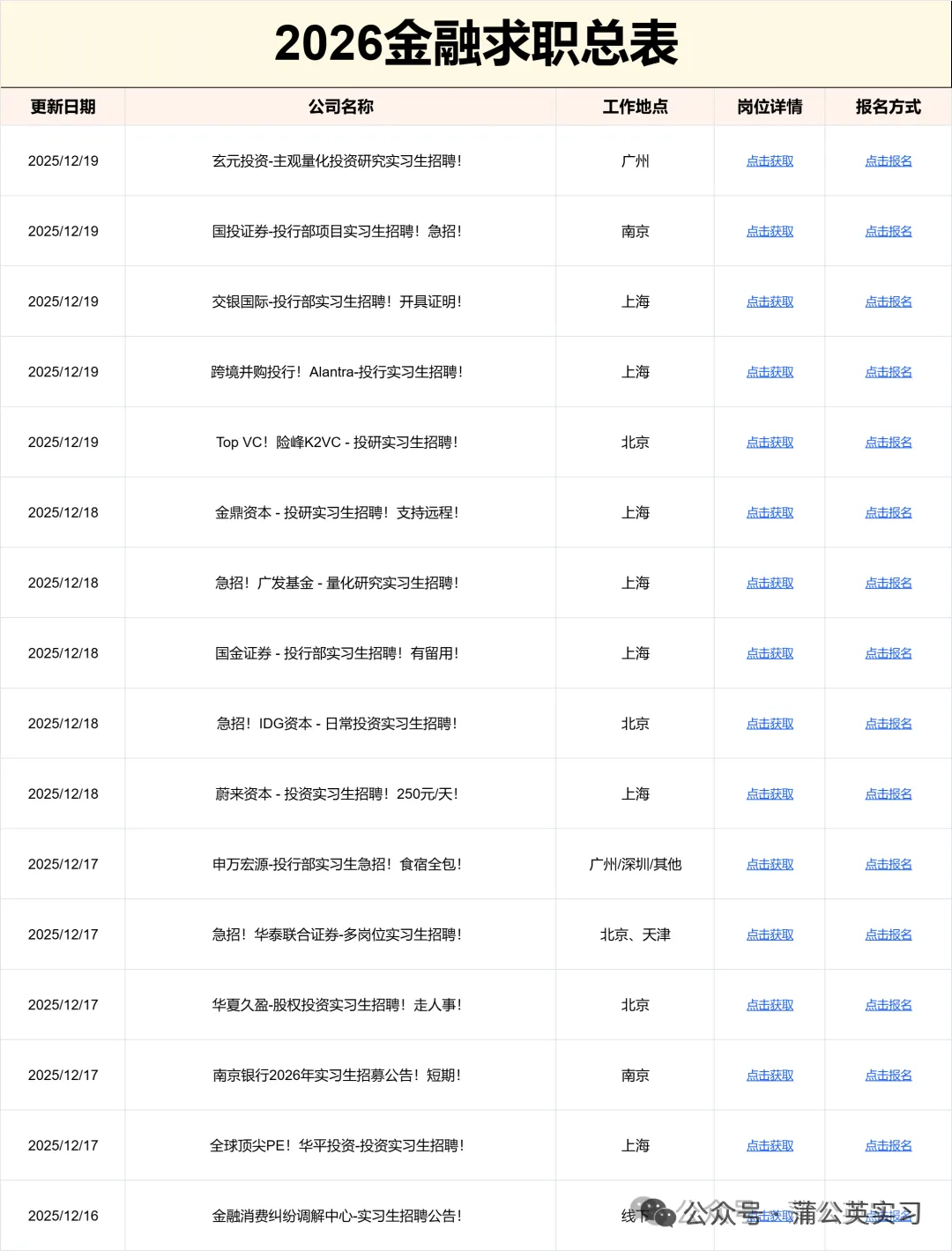 ☛ 2026券商投行实习信息(散招实习)